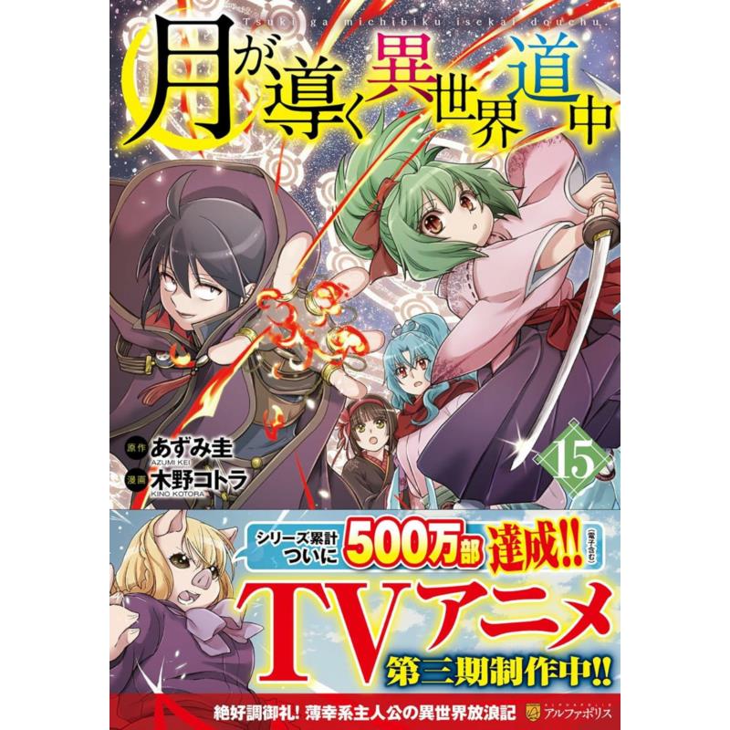 Przedpłata 15 tomu mangi "Podróżując pod księżycem przez inny świat" (Tsuki ga Michibiku Isekai Douchuu), premiera tego tomu zaplanowana jest na 20 marca 2029. Kolejne tomy będą ukazywać się co 3 miesiące. Cena wysyłki wliczona jest już w cenę przedpłaty. Mangi w prenumeracie i przedpłacie wysyłane są listem zwykłym ekonomicznym w kopercie bąbelkowej w dniu premiery danego tomu. Obwoluta pochodzi z wersji japońskiej.